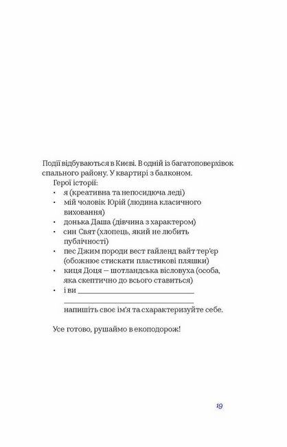 Маріанна Бойко прийняла цей виклик, провівши 104 дні без звичних пластикових речей. Як піти за покупками без жодного пакета? Як бути із шампунями та косметикою? І що робити, якщо турботлива продавчиня на ринку наполегливо пакує вам городину в пакет, здивовано промовляючи: «Доцю, та це ж безкоштовно»? Авторка провела свій експеримент в українських реаліях і охоче ділиться лайфхаками, як не тільки відмовитися від використання поліетилену, а й стати екоблогером і допомагати іншим усвідомити важливість зменшення сміття на планеті.