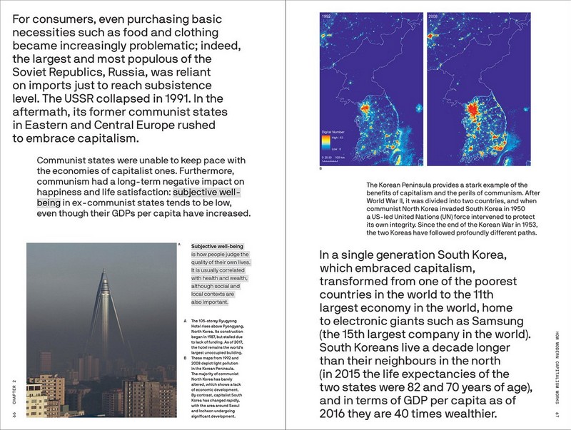 «Чи працює капіталізм?» - надзвичайно актуальне питання сьогодні, і не в останню чергу для покоління, яке дорослішає у світі, що все ще переживає наслідки майже повного краху світової економіки у 2008 році. Економічна теорія може бути складною, але добре структурований текст Джейкоба Філда, що спонукає до роздумів, викладає дебати у чіткий, доступний і захоплюючий спосіб. Інфографіка та хронологія допомагають читачам зрозуміти основні принципи, історію та контекст капіталізму, не відволікаючи їх від переконливих аргументів. Джейкоб Філд подає виважені висновки, в яких розглядаються докази з кожного боку, залишаючи читачеві можливість зробити власні висновки.