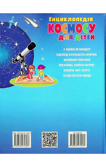 Пізнавальна дитяча енциклопедія з ілюстраціями. Рекомендована для дітей віком від 5 до 10 років, які цікавляться наукою, технікою та загадками Всесвіту. Ідеально підходить для сімейного читання та як додатковий матеріал до шкільних уроків.