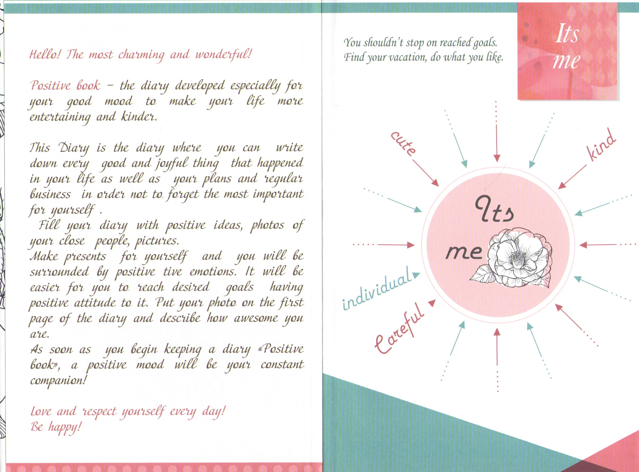 Вам буде легше отримувати в житті бажаних результатів, маючи позитивний настрій. Після того як ви почнете вести щоденник «Positive book», позитивний настрій буде вашим постійним супутником!