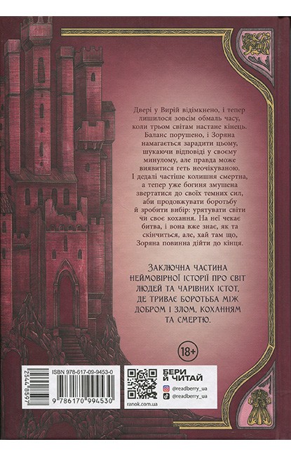Двері у Вирій відімкнено, і тепер лишилося зовсім обмаль часу, коли трьом світам настане кінець. Баланс порушено, і Зоряна намагається зарадити цьому, шукаючи відповіді у своєму минулому, але правда може виявитися геть неочікуваною. І дедалі частіше колишня смертна, а тепер уже богиня змушена звертається до своїх темних сил, бо має продовжувати боротьбу й зробити вибір: урятувати світи або своє кохання. На неї чекає битва, і вона вже знає, як та скінчиться, але, хай там що, Зоряна повинна дійти до кінця.