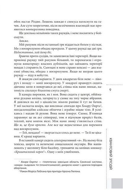 «Квантовий злодій» фінського письменника Ганну Раяніємі – це роман, що відкриває двері у світ майбутнього, де реальність переплетена з технологіями, а свідомість і пам’ять стають валютою. У центрі сюжету – Жан ле Фламбер, харизматичний злодій, який виривається на свободу, щоб знову грати у свою небезпечну гру. Тут злочини переплітаються з філософією, квантова механіка – з гостросюжетними поворотами, а інтелектуальна складність тексту поєднується з драйвом космічної пригоди.