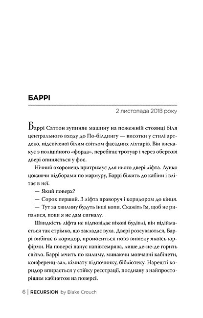 У романі «Рекурсія» Блейк Крауч не лише створив альтернативну реальність, а й змусив ще раз замислитися про те, що існування людства залежить від кожного з нас…
