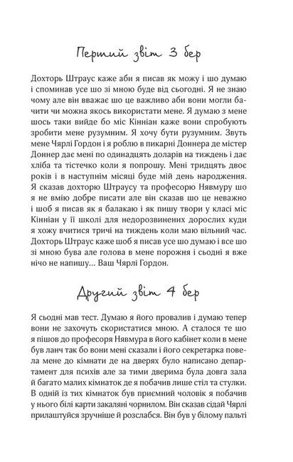 Чарлі Гордон — розумово відсталий, але у нього є друзі, робота, захоплення і непереборне бажання вчитися. Він погоджується взяти участь у небезпечному науковому експерименті, який може зробити його найрозумнішим...