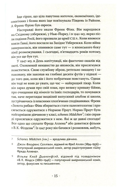 - Твір про маніпуляції, паралельні реальності та силу слова — через вигадану книгу, яка ставить під сумнів «офіційну» історію.
