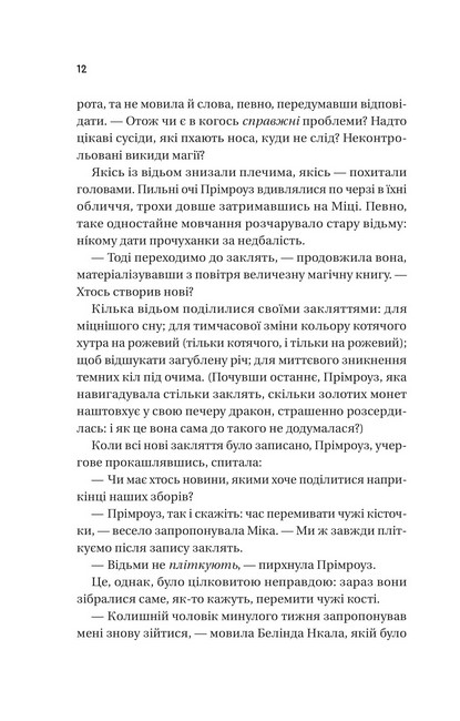 Санґу Манданна створила захопливий світ, сповнений яскравих персонажів та дотепних діалогів. «Надтаємне товариство незвичайних відьом» відзначається теплою атмосферою, де кожен герой має свою історію, а сюжет тримає у приємній напрузі до останньої сторінки. Це роман про прийняття себе, силу громади й те, що навіть найменша магія може змінити життя.