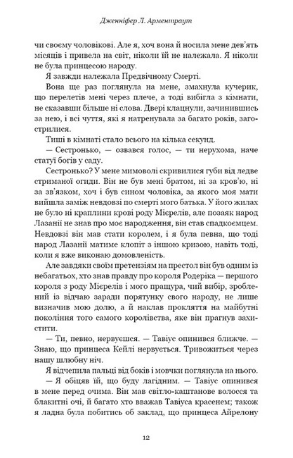 Серафена Мієрель — Обрана. Ба більше, обрана ще до свого народження, щоб дотримати умов відчайдушної угоди, яку її предок уклав задля спасіння свого народу. Згідно з домовленістю, Сера має стати Дружиною Предвічного Смерті. Якщо вона схибить, королівство буде приречене на повільну загибель від Гнилі. Однак Предвічний відмовляє дівчині, сказавши, що не потребує Дружини. Віднині Серафена чужа у власному домі, ганьба сім’ї і народу, які покладали на неї так багато сподівань.
