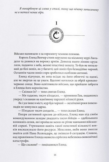 Це високофентезійний роман із захопливими політичними інтригами, глибокою магічною системою та постійною грою на межі надії й відчаю. Книга стане справжнім відкриттям для фанатів Джорджа Мартіна чи Роберта Джордана, а також для тих, хто шукає у фентезі не лише пригоди, а й роздуми про владу, моральність і вибір.