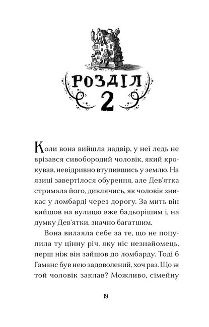 Усі в Гнізді Гаманса знають: виживеш — якщо не довіряєш і швидко бігаєш. Дев’ятка — сирота й кишенькова злодійка, змушена жити під тиском злого ватажка банди. Але все змінюється, коли вона краде в елегантної пані дивну торбинку, а в ній — лише ляльковий будиночок. Один стукіт у крихітні дверцята — і будиночок перетворюється на справжній дім. З чарівними мешканцями, таємницями й випробуваннями. Дев’ятка потрапляє у світ магії, що змінює її назавжди.