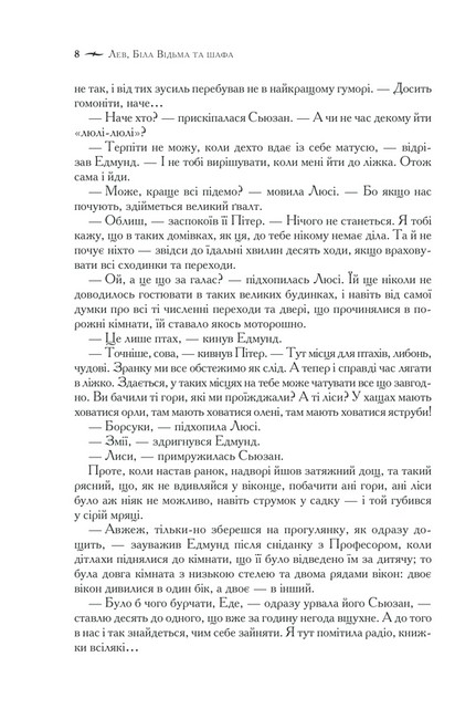 Найулюбленіша книжка читачів кількох поколінь, у якій письменник та філософ Клайв Стейплз Льюїс гармонійно поєднав героїв давніх англійських казок, античних міфів і легенд, християнські ідеї добра, прощення та милосердя із захопливою, барвистою, чарівною фантазією про величезний світ.