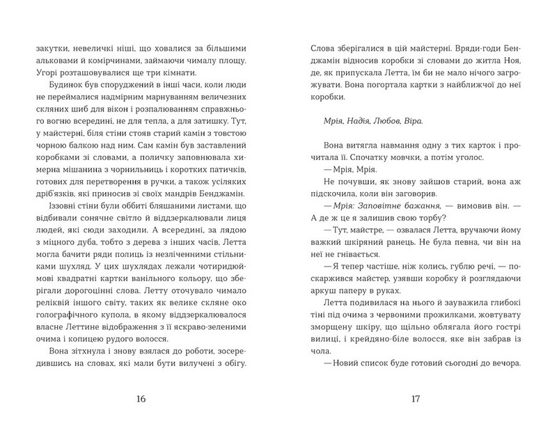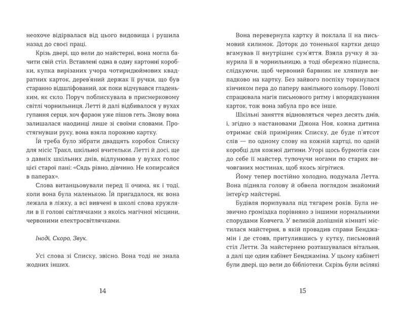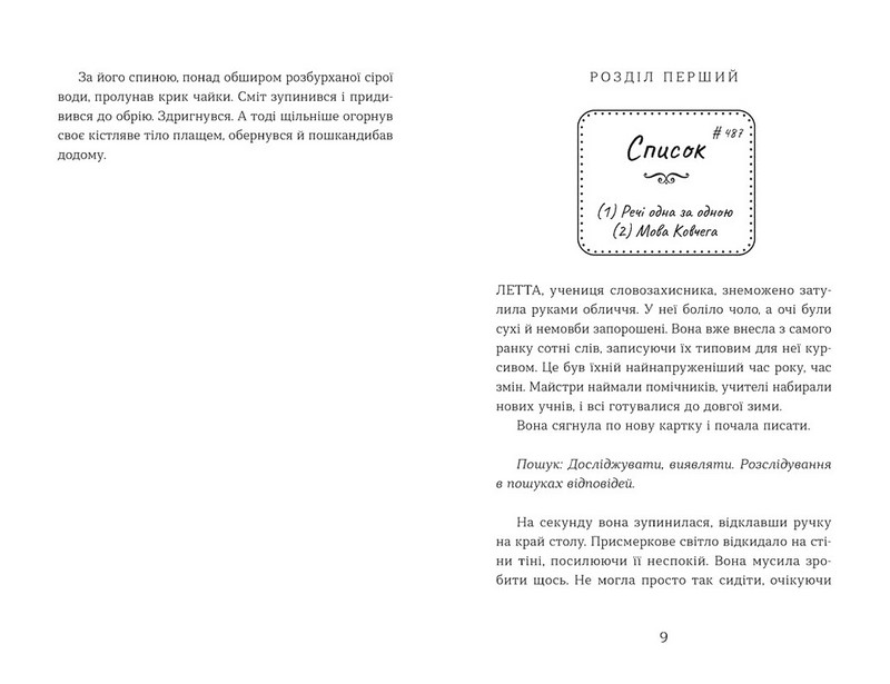 Летта живе у світі слів, вона — учениця словозахисника. Картотеки, ручки, бурякове чорнило, письмовий стіл — її особливий затишок.