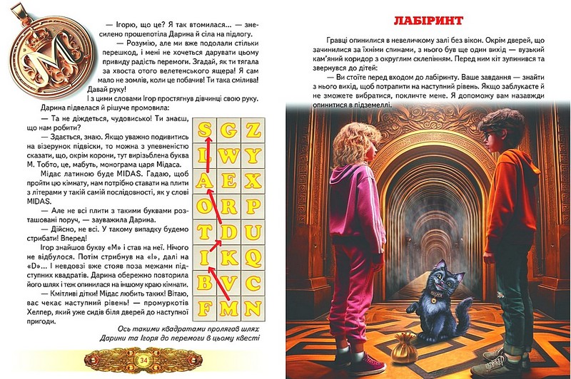 Комп’ютерний світ, буває, захоплює сучасних дітлахів настільки, що часом вони втрачають відчуття реальності, перестають спілкуватися з друзями й замикаються у власному віртуальному світі. А якщо трапляється надибати на дуже захопливу гру, то весь вільний час присвячується їй. Ось і герої цієї книжки, школярі Дарина та Ігор, занурилися в одну з таких комп’ютерних ігор під назвою «Талісманія». Вона виявилась дуже підступною, бо переможці дивним чином раптом ставали дійовими особами самої гри й потрапляли до таємничого золотого палацу давнього царя Мідаса. Саме це й сталося з Дариною та Ігорем, і золотий палац став для них новою реальністю. Тепер уже не вони сидять вдома й грають у своє задоволення, шукаючи талісмани, а навпаки, з ними грає штучний інтелект разом із привидом царя Мідаса й ставить перед ними завдання, які потрібно вирішити за допомогою зібраних талісманів. Права на помилку немає. Щоб отримати скарби й повернутися додому, у реальний світ, треба подолати всі рівні гри. Чи зможуть діти це зробити? Відповідь дізнаєтесь, прочитавши цю захопливу книгу.