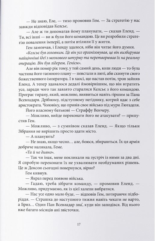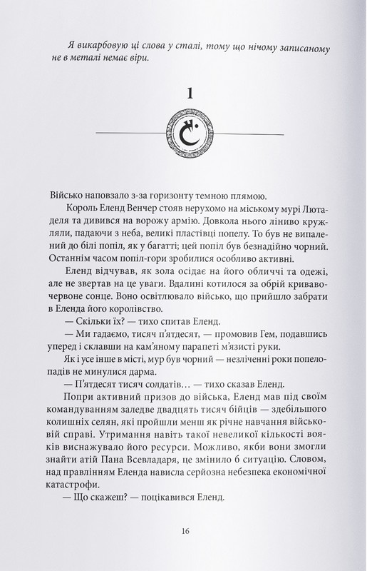 Сандерсон піднімає ставки: магія туманів розкривається в нових масштабах, з’являються небачені досі істоти, а легенда про Джерело стає центром боротьби. Автор майстерно поєднує напружені битви, політичні дебати й дуже особисті моменти героїв, тому роман читається і як пригодницька історія, і як драма про відповідальність влади. Окремий бонус — атмосферне українське видання з оригінальним оформленням, яке чудово виглядає на полиці поруч з іншими книгами циклу.