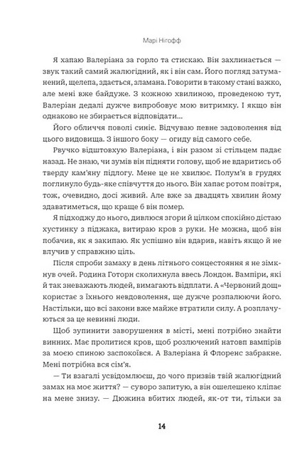 Минуле залишило шрами, а майбутнє вимагає жертв. Флоренс Готорн пройшла крізь темряву й опинилася в ще глибшому мороці. Тепер кожний її крок — це крок над прірвою. Справжні обличчя відкриваються, старі обітниці тріщать під натиском бажань, і навіть найміцніші переконання тьмяніють, коли треба робити вибір, що може розбити серце. Таємниці розкриваються, альянси змінюються, а межа між любов’ю та зрадою стирається. Іноді, щоб стати собою, доводиться зруйнувати все, чим ти був досі. У продовженні історії на вас чекають складніші інтриги, нові небезпеки, зради, роздвоєність почуттів і сила, захована в крові. Дорога до істини виявиться кривавою. Але, можливо, саме в ній — шанс на майбутнє. Або на загибель.