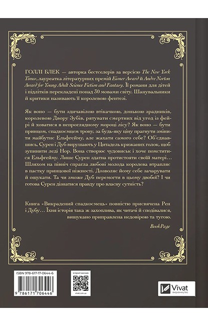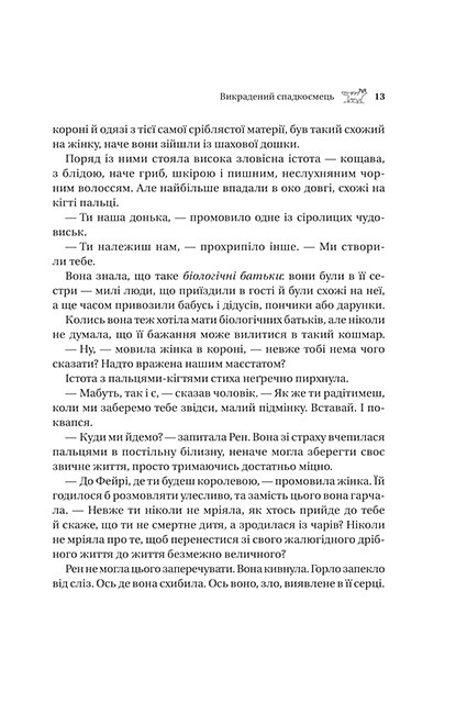 Світ фейрі повертається у новій серії від Голлі Блек, авторки легендарної трилогії «Жорстокий принц». «Викрадений спадкоємець» відкриває нову історію, сповнену небезпек, інтриг і темного чару. Це роман про довіру й зраду, про кохання, яке здатне бути і зброєю, і слабкістю водночас. На сторінках оживає магія, що заворожує і тривожить.