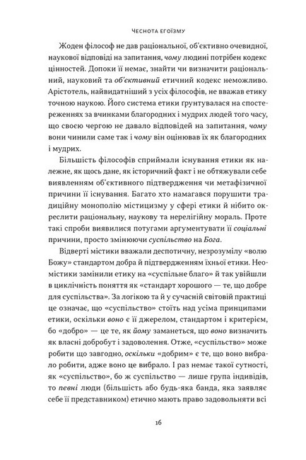 Егоїзм — це чеснота? Айн Ренд свідомо пішла на таку провокацію в назві, щоб подолати багатовікову демонізацію терміна. В її трактуванні егоїзм — не синонім зла і стратегії «йти по головах», а турбота про власні інтереси.