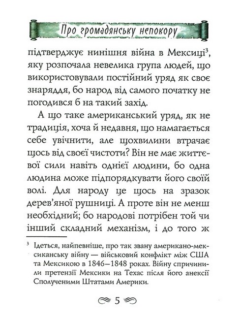 Пропоноване видання знайомить читача з роботою Генрі Девіда Торо (1817–1862) — американського письменника, філософа, публіциста, натураліста і поета. Деякі автори вважають його засновником сучасної концепції громадянської непокори.
