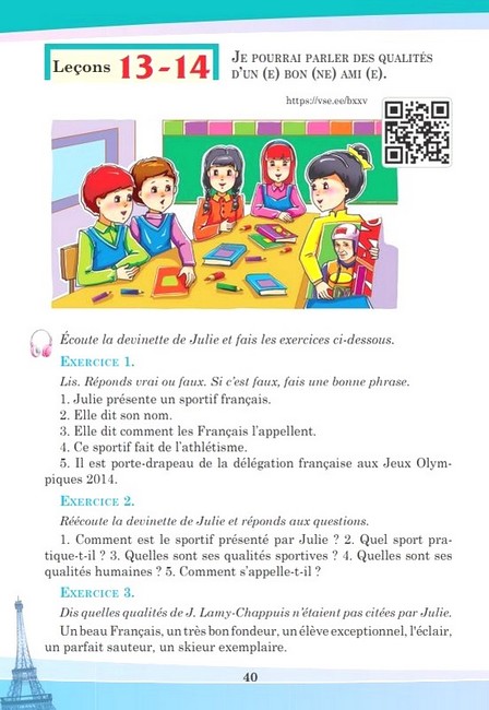 Сучасний підручник, який відповідає новітнім вимогам викладання французької мови. Змістовий матеріал — тексти, аудіоматеріали, тренувальні вправи, різноманітні завдання забезпечують розвиток усіх мовних компетенцій.