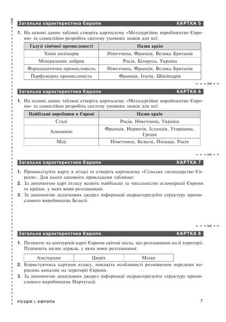 Посібник містить в собі завдання для роботи з географічними картами та Інтернет-джерелами. Вони укладені відповідно до чинної шкільної програми з географії. Завдання покликані розвивати навички самостійної роботи з різними джерелами інформації.