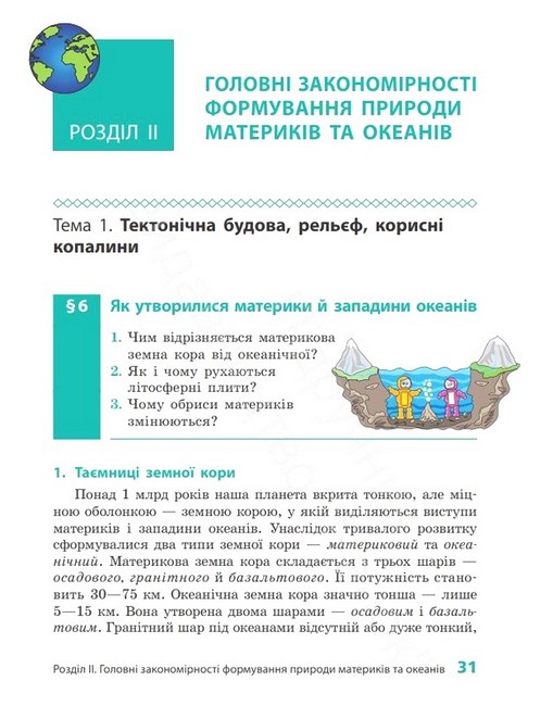 Підручник cтворено відповідно до модельної навчальної програми «Географія. 6–11 класи» для закладів загальної середньої освіти (автори Запотоцький С. П. та інші) і містить матеріал про природу материків.
