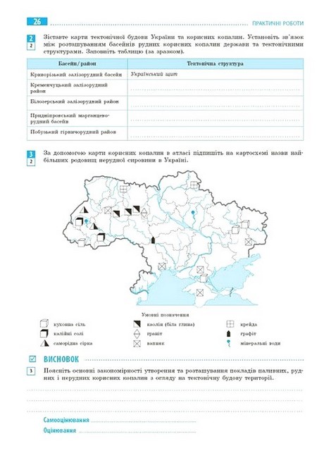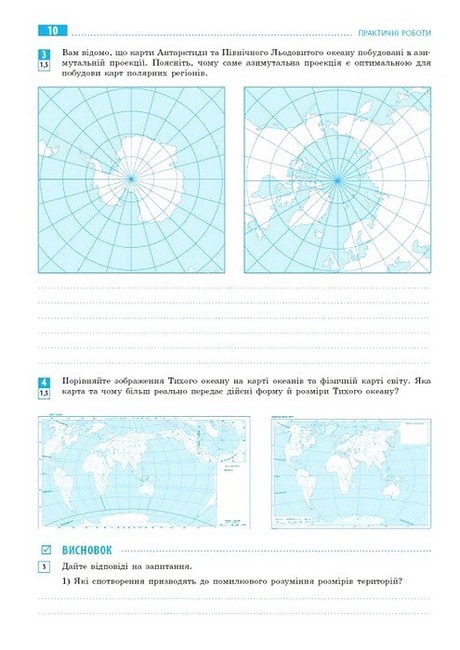 У посібнику наведено різноманітні вправи як на розвиток практичних умінь, так і творчого характеру, а також усі необхідні контурні карти.