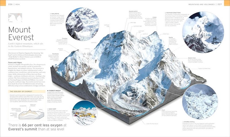 Пейзажна фотографія поєднується з тривимірними моделями місцевості та іншими пояснювальними творами мистецтва, щоб виявити, що лежить під поверхнею та як формуються особливості. Щоб завершити всебічну картину, також включені рослини та тварини, які населяють навколишнє середовище, що робить природні чудеса світу святом нашого світу та найдоступнішим путівником щодо геологічних процесів і особливостей Землі.
