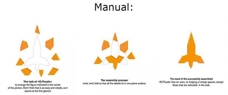 Завдання полягає в тому, щоб побудувати фігуру, зазначену в центрі малюнка. Не думайте, що це так легко і просто, як здається на перший погляд! Процес складання триває від 15 хвилин до декількох годин IQ Puzzle відмінний набір для вечірок!