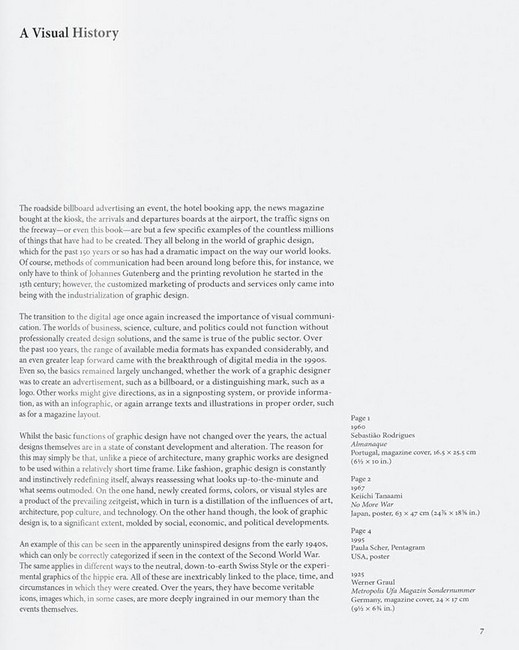 Понад 480 сторінок із ретельно відібраними ілюстраціями, постерами, логотипами, обкладинками журналів та рекламними кампаніями. Кожна епоха супроводжується авторськими коментарями, які пояснюють культурний контекст, стиль і внесок провідних дизайнерів у розвиток професії.