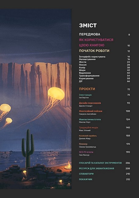 Завдяки зрозумілим покроковим інструкціям, практичним порадам і надихаючим прикладам, ви навчитеся створювати приголомшливі зображення, навіть якщо тільки починаєте свій шлях у малюванні. У книзі є розділи присвячені налаштуванням, жестам, роботі з шарами та кольором, дизайну персонажів, створенню фентезійного пейзажу, фантастичних істот та багато іншого. Крім того, ви тут знайдете безліч посилань та ресурсів для подальшого професійного розвитку. А завдання та вправи допоможуть закріпити отримані знання.