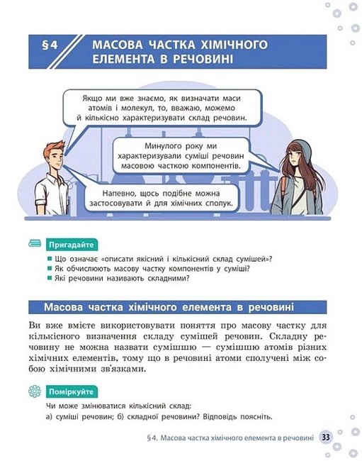 Підручник містить зрозумілі та доступні пояснення основ хімічних процесів, практичні приклади, які допомагають візуалізувати й застосовувати вивчений матеріал у житті.