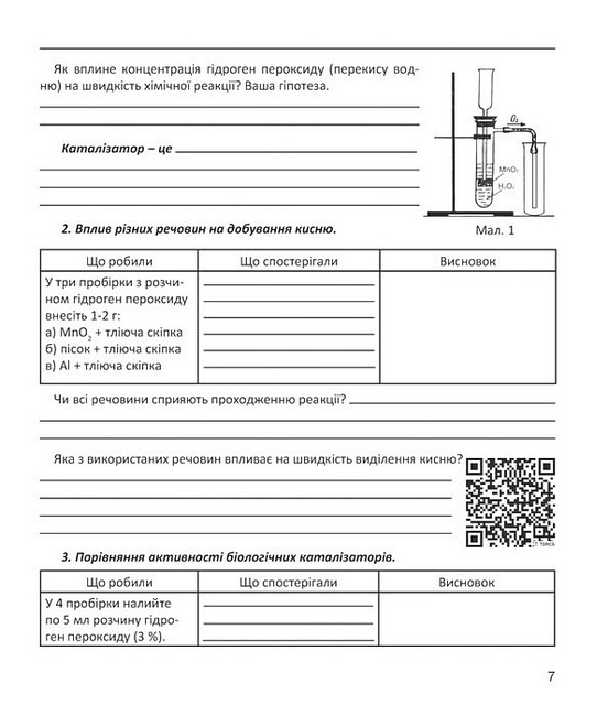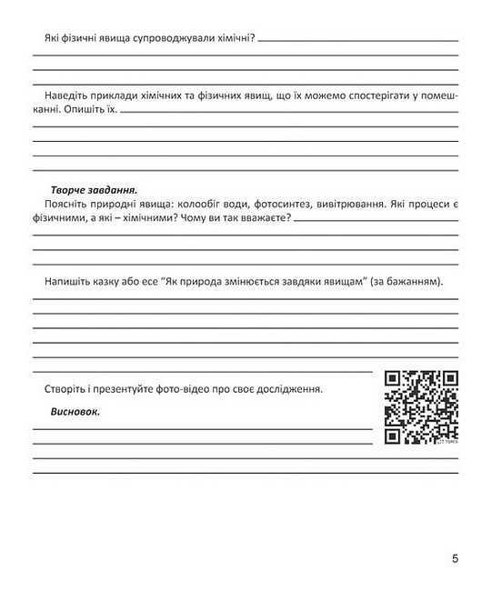 Зошит містить дослідження, виконання яких передбачено в 8 класі. Вони відповідають модельній навчальній програмі “Хімія. 7–9 класи” (авт. Григорович О. В.) для закладів загальної середньої освіти.