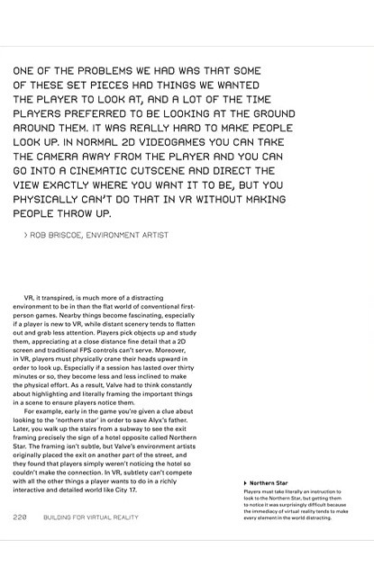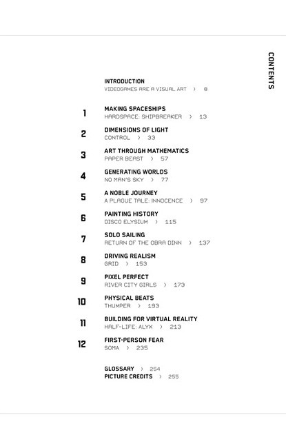 В одинадцяти розділах, кожен з яких присвячений певній грі від блокбастерів AAA, таких як Control і Half-Life: Alyx, до культових проривних ігор, зокрема No Man's Sky і Return of the Obra Dinn, книга документує неймовірне ремесло створення світу відеоігор і візуального оповідання через найпопулярніший у світі, але рідко повністю зрозумілий засіб розваг. Текст книги обертається навколо захоплюючих, спеціально створених зображень ‘photographed’ у двигуні автора, демонструючи магію та метод роботи кожної студії.