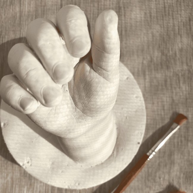- Через 40 хвилин дістаньте зліпок та очистіть його за допомогою стеків, щоб залишилась тільки форма ваших рук
