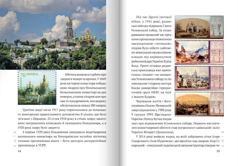 Ця книга є своєрідним продовженням книги «Краса і велич України», яку видало «Свічадо» у 2022 році. Цього разу йдеться про храми і монастирі в Україні та на поселеннях, показані у філателії – на марках, конвертах, штемпелях. Розповідь супроводжують світлини об’єктів, зображених на марках. Описи марок подані за науковими та краєзнавчими публікаціями.