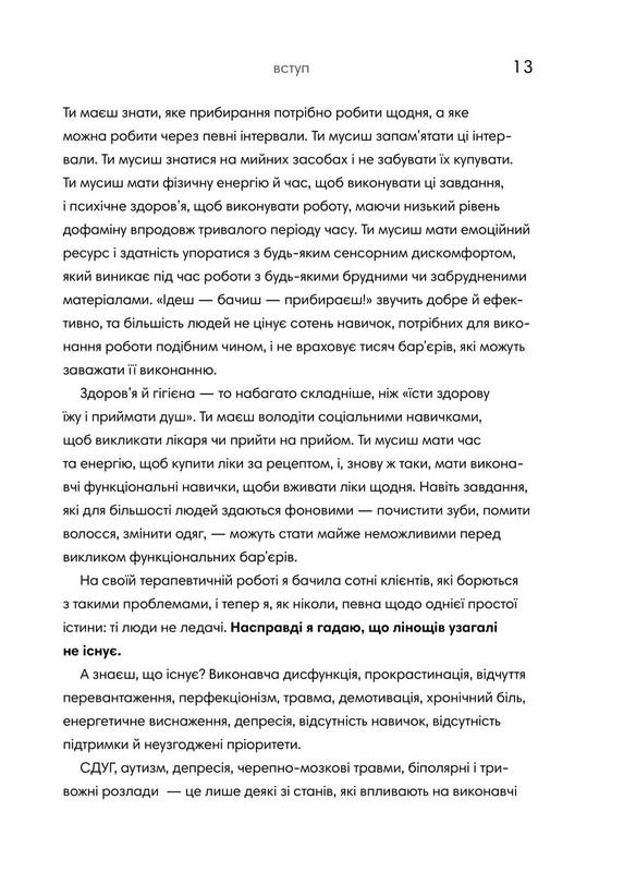 Книга належить до жанру практичної психології та побутової самодопомоги. Вона підійде всім, хто хоче навчитися підтримувати порядок без надриву: батькам, людям з напруженим графіком, тим, хто бореться з прокрастинацією чи відчуттям перевтоми.