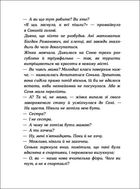 Повість розповідає про одне літо 15-річної Соні — самотньої та замкнутої підлітки, що опиняється перед вибором, переживає першу закоханість і шукає своє місце в житті.