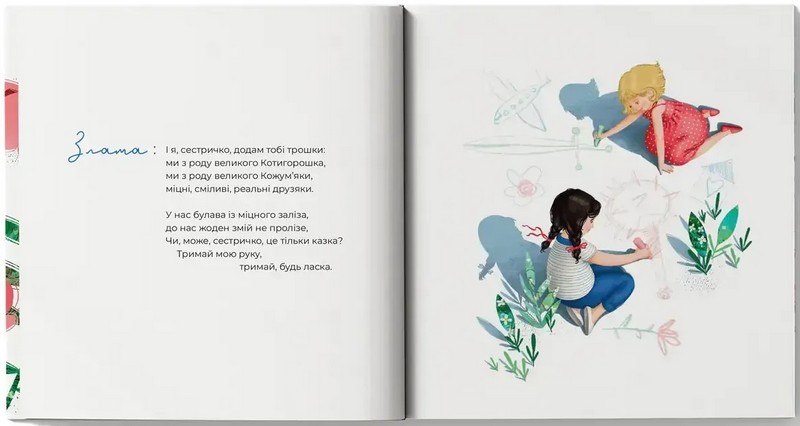 Десятирічні сестрички Віта і Злата діляться одна з одною своїми мріями: досхочу ходити до лісу, плавати в річці, лежати в траві горілиць і роздивлятися хмари. Вони також хочуть вивчити кілька замовлянь, щоб на Землі запанував мир, проте чарам місце тільки в казках... Натомість ця добра і дбайлива книжка розповідає, що в житті є дещо могутніше за чари. Наприклад, бути поруч зі своїми близькими та триматися з ними за руки. А якщо разом із вами ще й пудель Бука, який вміє сміятися хвостом, то це вже справді шалено! Перед вами дуже тепла п’єса-діалог про найрідніше, написана на прохання керівниці Творчої студії Наталії Журавльової. Це світле та чесне віддзеркалення розгубленості дітей під час найскладнішого життєвого досвіду: війни. Текст можна читати або розігрувати з дітьми вдома, на уроках, у шкільних театрах і театральних гуртках. А можна навіть поставити п’єсу онлайн для рідних і друзів, які не поруч. Читайте самі, читайте в парі, читайте й підтримуйте своїх найдорожчих людей.