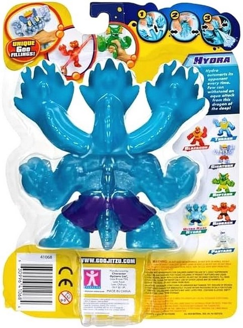 Герої Goo Jit Zu повертаються до бою! Hydra The Three Headed Dragon надзвичайно еластична та рідкісна. Наповніть голову фігурки водою, прицільтесь і випустіть воду! З Hydra всі 3 голови можуть вибухати водою! Фігурка розтягується до 3-х разів, скручується і потім легко набуває свого первісного вигляду! Нескінченні пригоди чекають!