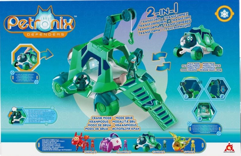 Ласкаво просимо у світ Petronix Defenders! Коли дикі тварини з будь-якого куточку світу опиняються в небезпеці, команда юних супергероїв відправляється їм на допомогу! Їхні рюкзаки перетворюються на маленьких тварин за допомогою дивовижних технологій, і разом вони відправляються у все більш сміливі місії, щоб врятувати тварин! Фігурка-трансформер Шеллі велика плюс фігурка Тіма трансформується в різні режими: субмарина, машина. Має світловий ефект - світяться очі. У наборі: персонаж, транспорт, аксесуари. Розмір фігурки-трансформера: 23х13х15 см. Для роботи іграшки необхідні батарейки (3 шт. типу LR44/AG13, входять до набору).