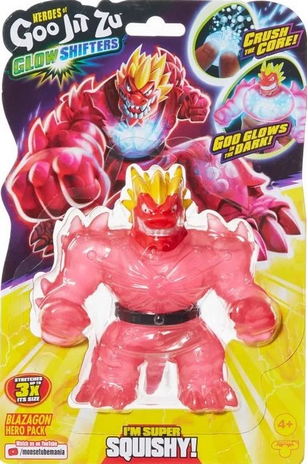 Випробуй суперсилу Гуджитсу! Розтягуй монстра-супергероя, він дуже м'який та супертягучий. Володіючи неймовірною суперсилою, він легко набуває свого первісного вигляду. Фігурка, що тягнеться, приємна на дотик, розтягується в 5-6 разів, скручується і потім легко набуває свого вихідного вигляду. Іграшка-тягучка GooJitZu Герої Гуджитсу Глоу Шіфтерс, Блейзагон має унікальний липкий наповнювач. Іграшка-розтяжка серії "Глоу Шіфтерс" зроблена з еластичного, але міцного полімеру. Безпечна для дітей. Іграшка-антистрес заспокоює, знімає напругу. Вона розвиває уяву, дрібну моторику, координацію.
