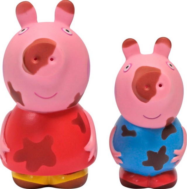 Пеппа та Джордж стрибали по калюжах та бруду. Їм терміново треба помитися. Опустіть їх у теплу воду, і плями зникнуть, наче їх і не бувало. Дістаньте іграшки з води, почекайте трохи — ви побачите, як магічним способом цятки з'являються знову.