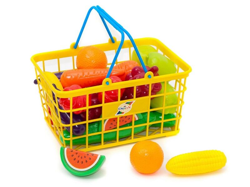 Кошик з овочами та фруктами подарує Вашій малечі можливість відчути себе в ролі покупця в супермаркеті. З таким кошиком можна грати і вдвох. Всі знають улюблену гру дівчаток у продавця та покупця, у неї граю всі юні господарки. Іграшка зроблена і якісної пластмаси та не має запаху. Візьміть цей набір із собою на пікнік і Вам з дитиною не буде нудно. Кошик дуже зручний при перенесенні. Деталі набору фрукти-овочі виготовляються екструзійно-видувним методом із поліетилену низького тиску, кошик малий та ручки кошика виготовляються методом лиття з поліпропілену.