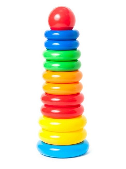 Висота цієї пірамідки 35,5 см. В діаметрі вона становить 13 см. Це найвища пірамідка з усіх, які представлені українським виробником дитячих іграшок Оріон. Унікальність даної пірамідки в тому, що вона складається з парних за кольорами кілець, які нанизуються на вісь підставки: 2 жовтих, 2 червоних, 2 помаранчевих, 2 зелених і 2 синіх кільця. Пірамідка виконана з високоякісного пластику і безпечна для дітей.
