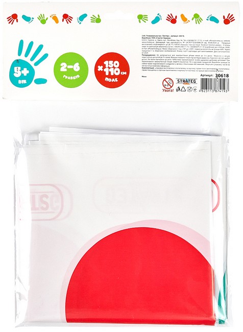 Комплектація: упаковка (виготовлена з поліетилену та картону), ігрове поле (виготовлено з поліетилену), ігрова планшетка зі стрілкою розміром 14х14 см (виготовлена з картону та пластику), інструкція (виготовлена з паперу).