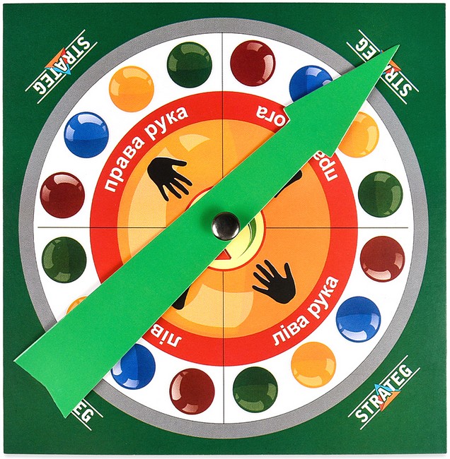«Твістер» — рухлива гра для компанії, яка дарує сміх і веселощі. Весела гра змусить вас крутитися, тягнутися і сміятися! Гравці мають ставити руки й ноги на кольорові кола, не падаючи й не заплутуючись. Ідеально для активного дозвілля вдома або на природі, для дітей та дорослих. Для дітей від 5 років і дорослих.