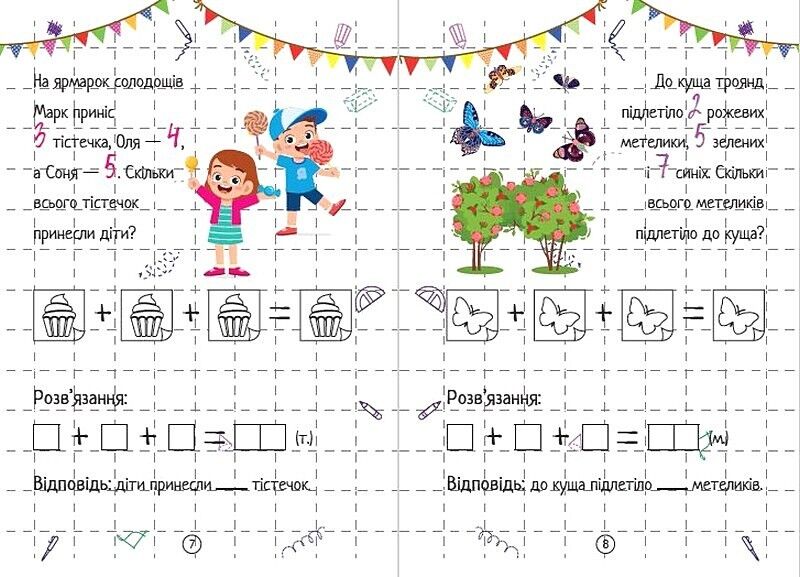 Книжки серії «Весела математика» — чудовий подарунок маленьким розумникам, які лише починають опановувати математичні дії. Діти вчитимуться розв'язувати задачі різної складності, використовуючи наліпки. Це зробить навчання більш наочним і неодмінно зацікавить малюка. Крім того, юні математики зможуть власноруч записати розв'язання цифрами.
