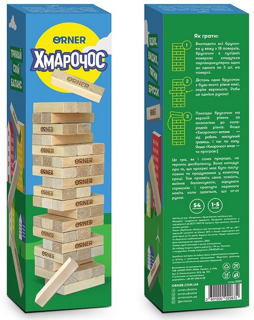Гра дженга «Хмарочос» ЕКО — маленьке випробування: спритності, рішучості, вмінню балансувати. Ну і, звісно, вмінню дихати не дихаючи. Жартуємо! Дихайте на повні груди.