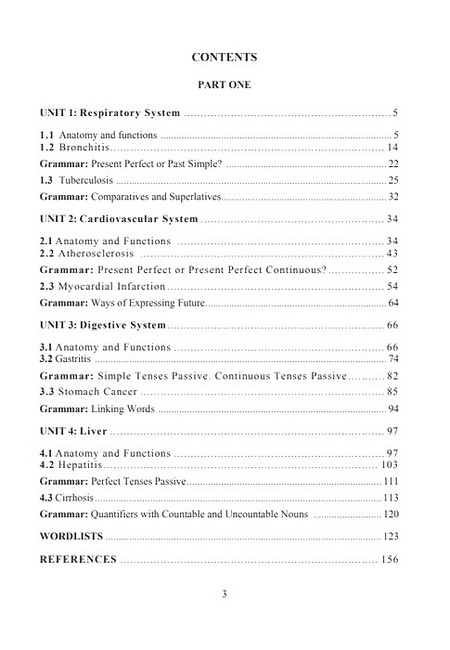 У навчальному посібнику подано 4 основних розділи та 12 тематичних блоків. Запропоновані оригінальні та адаптовані тексти з медичної тематики містять фундаментальний англомовний термінологічний матеріал. Навчальний посібник складається з комплексу вправ, який спрямований на ефективне засвоєння та застосування лексико-граматичного матеріалу у формі усних та письмових повідомлень, дискусій за ситуативно зумовлених обставин. У навчальному посібнику запропоновані творчі завдання, виконання яких передбачає використання різноманітних засобів пошуку інформації, її обробку та аналіз. Тексти для самостійного читання супроводжуються завданнями, які поєднують можливість самоконтролю, формування та покращення навичок складання резюме загальнонаукових текстів англійською мовою, створення усних та письмових презентацій.