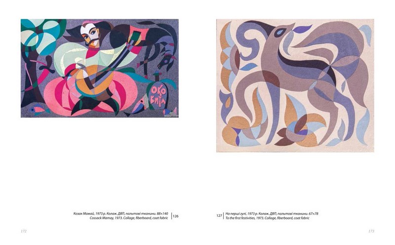Liubov Panchenko’s Art album is the first and, so far, only publication of her artworks, which returns her name to the Ukrainian Art after decades of oblivion. Only thanks to the publications in “Radianska zhinka” (Soviet woman) magazine back in 1960s and -70s of her embroidery sketches and fashion designs, which carried the expressively Ukrainian folk motifs, the Ukrainian public had a glimpse at her broad talent. Being a very gifted designer Liubov Panchenko has been working in different art genres. Among her works are lyrical watercolors, linocuts, ornamental fantasy wall paintings and unparalleled collages made from fabric patches. Panchenko’s entire oeuvre was conspicuously Ukrainian in its very essence, something that was judged by Communist regime as “bourgeois nationalistic” and, therefore, heavily censored and restricted. That is why Liubov Panchenko had no personal exhibitions or publications during Soviet times.