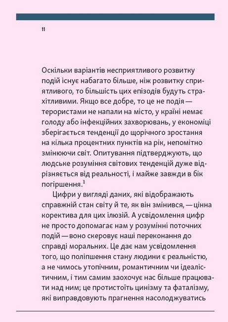 Багато що рухається в правильному напрямі, хоча вже багато років ЗМІ кажуть нам прямо протилежне. На момент публікації ми все ще відновлюємося після глобальної пандемії, за рогом підстерігає мавп’яча віспа, у Європі вирує війна, і багато країн потерпають від негативних наслідків кліматичних змін. У нас більше шансів знайти вирішення цих проблем із позиції визнання попередніх успіхів, ніж із позиції приреченості та похмурості.